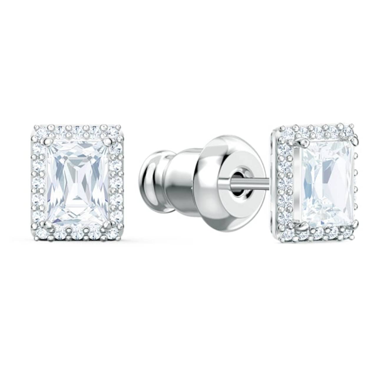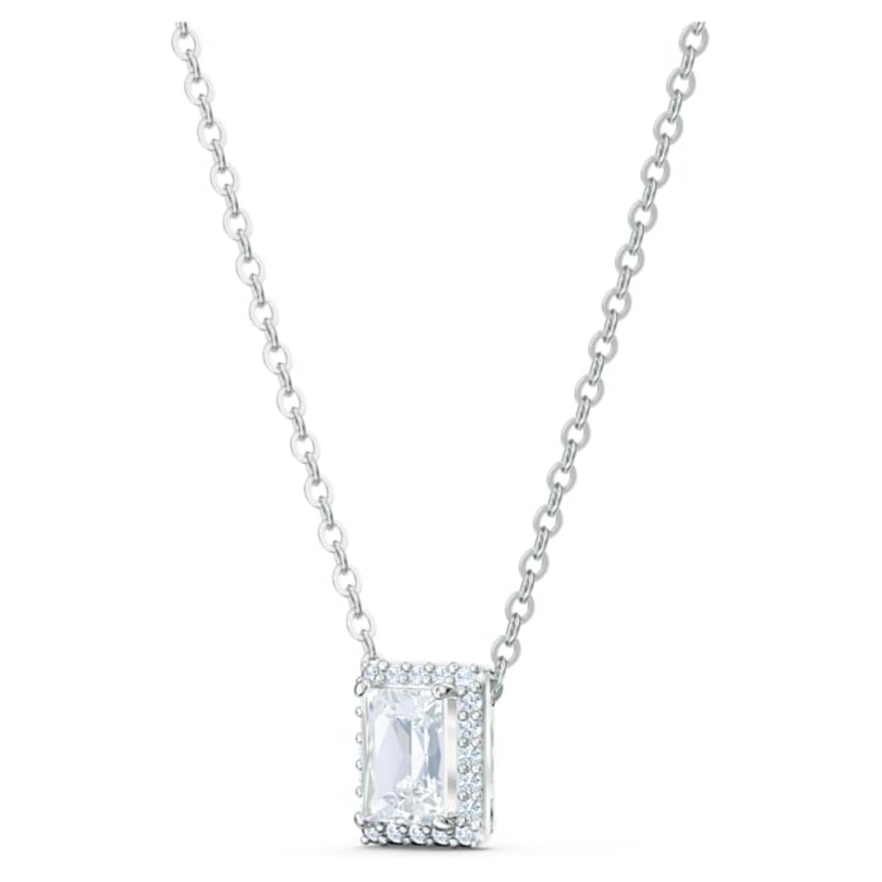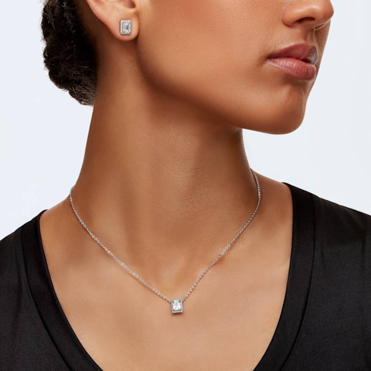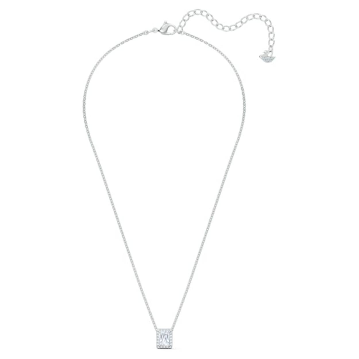 Deze prachtige sieradenset van Swarovski benadrukt tijdloze puurheid en elegantie. Hij bevat een glinsterende ketting versierd met een, glimmend wit kristal dat is gesneden in een gefacetteerde rechthoekige vorm, schitterend geaccentueerd door aanvullende witte elementen die het kristal omringen. De oorknopjes weerspiegelen het design van de ketting en creeren een uniek ensemble dat perfect is om een elegant accent aan je stijl toe te voegen. Een geinspireerd cadeau-idee.