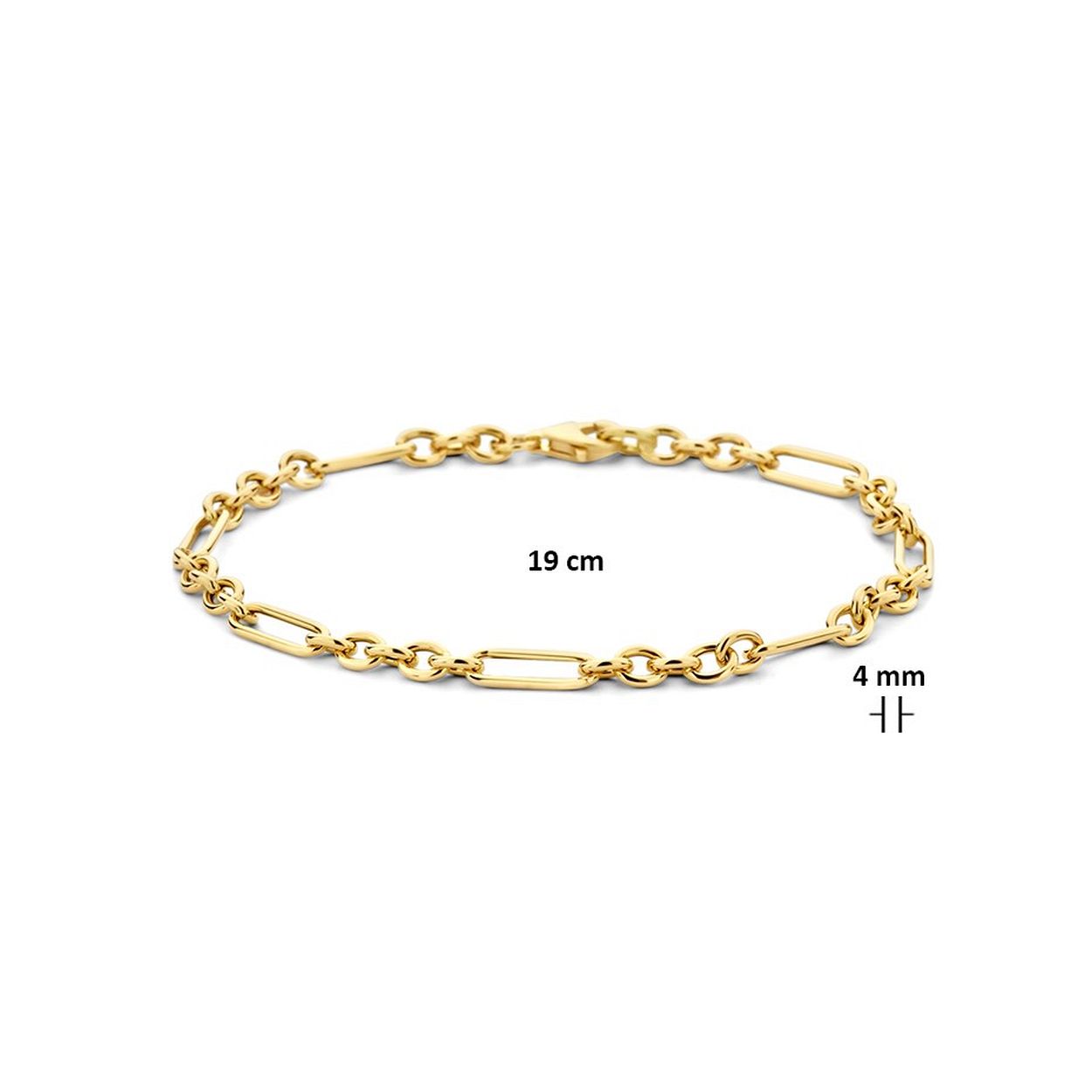14k Geelgouden anker armband met een schakelbreedte van 4mm. De armband heeft een draaglengte van 19cm en een stevige karabijn sluiting.