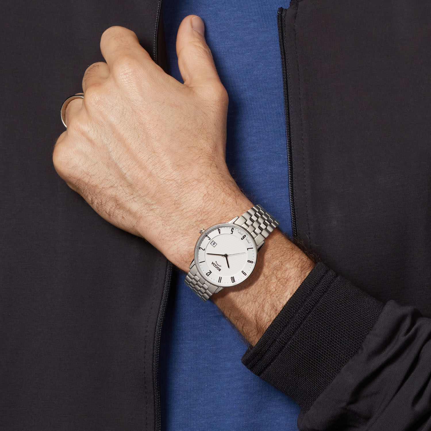 Dit herenhorloge van Boccia heeft een nette uitstraling. De 3607-06 heeft een ronde titanium horlogekast met een fijne bezel en een witte wijzerplaat met Romeinse cijfers en een datum. Aan de titanium kast zit een fijne titanium schakelband met een vouwsluiting. Het horloge heeft een doorsnee van 39mm, een saffierglas en is 5ATM. Of je nu sportief of chique gekleed gaat, dit horloge past bij elke outfit en iedere gelegenheid!