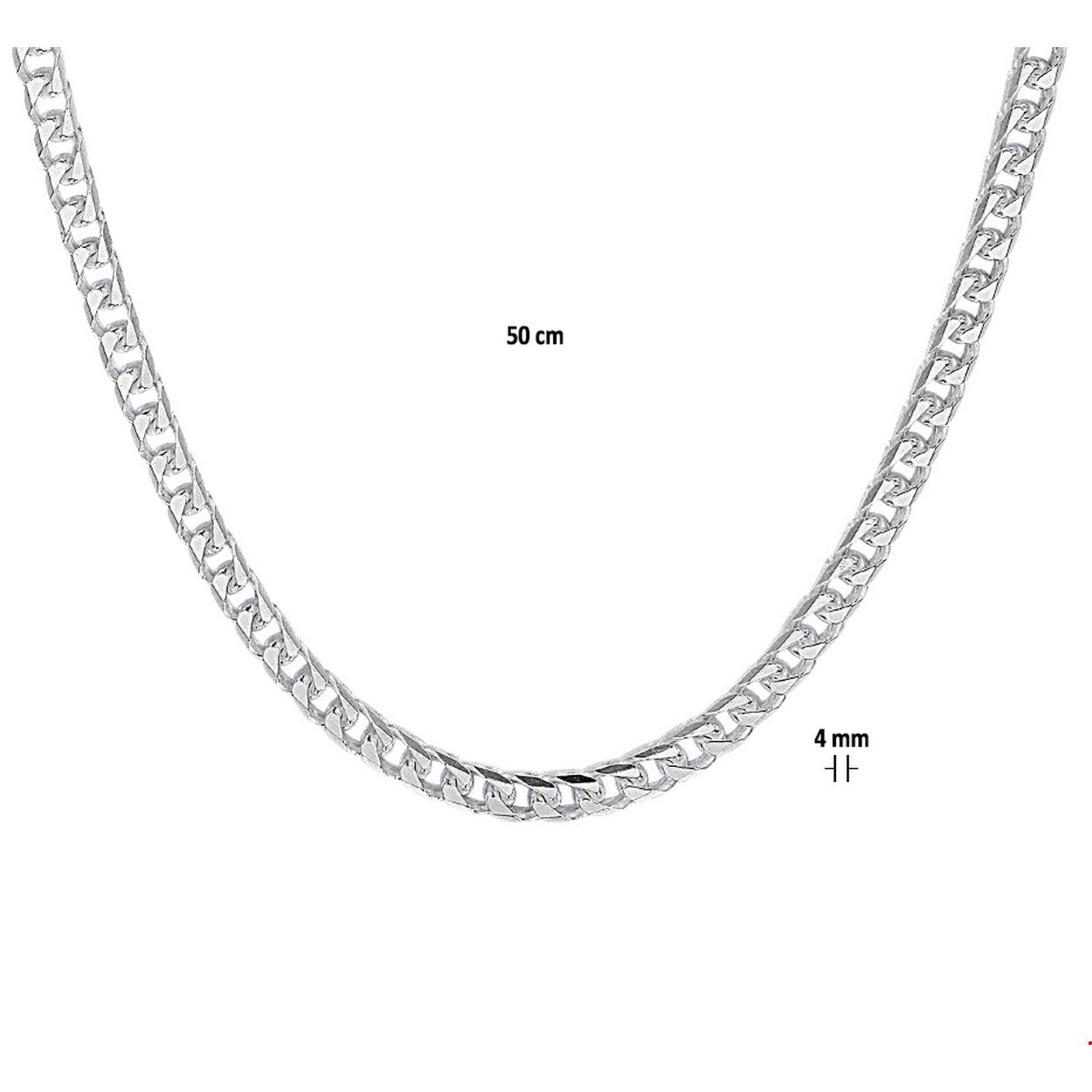 Zilveren collier met een gourmet schakel. Het collier heeft een schakelbreedte van 4mm en een draaglengte van 50cm. Uitgevoerd met een karabijn sluiting.