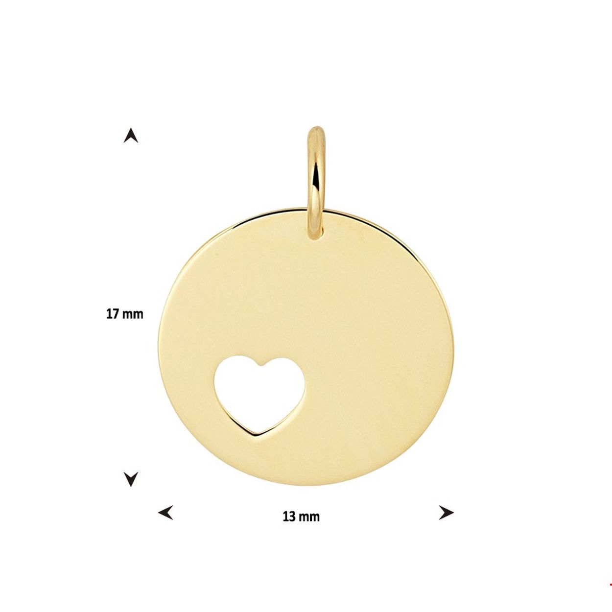 14k Geelgouden ronde graveerhanger met een uitgefreesd hartje.