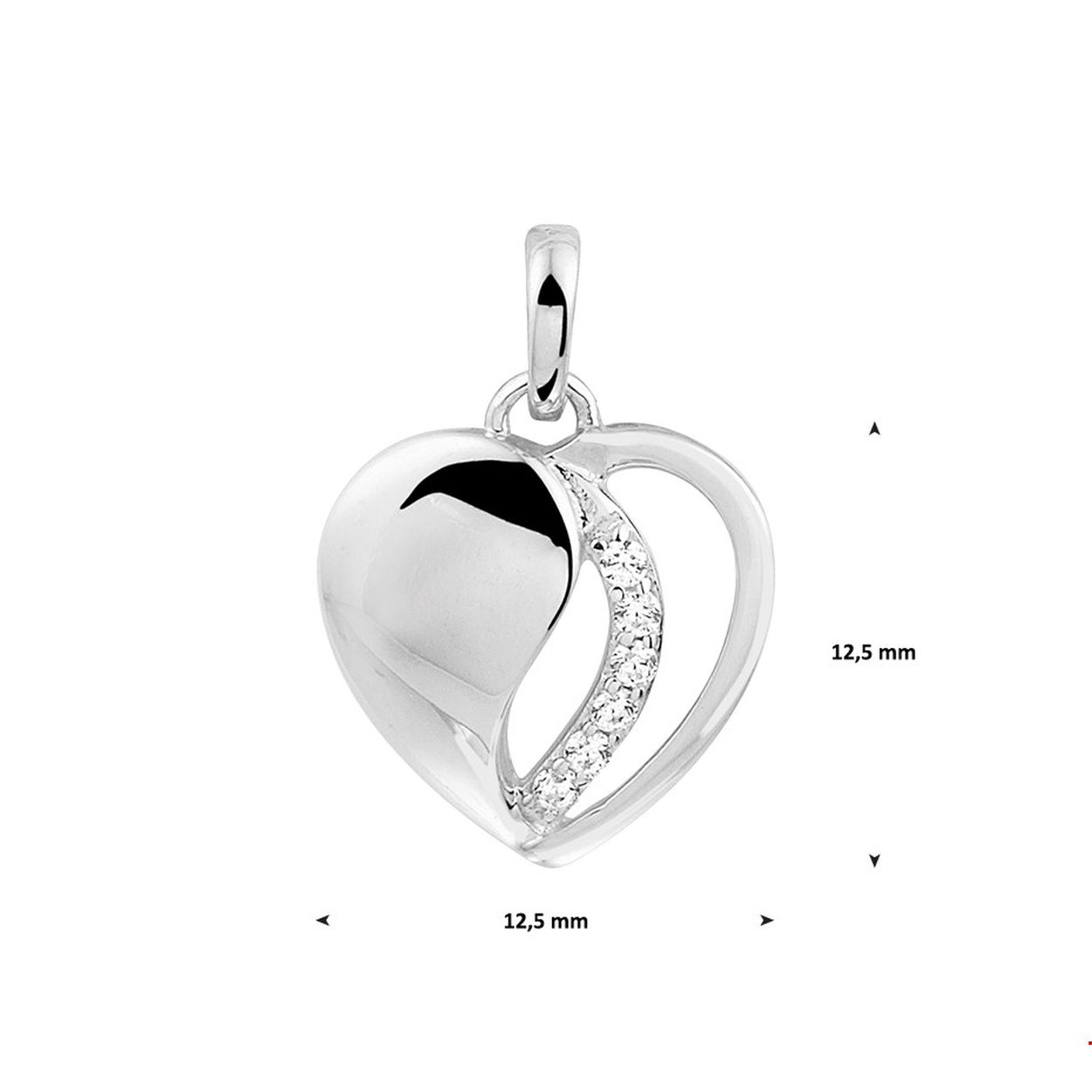 Beschrijving: Romantische gerhodineerd zilveren hart hanger met een afmeting van 12.5x12.5mm uitgevoerd met een schitterende rij van zirkonia. De hanger is ook goed te combineren met een bijpassend collier uit onze collectie. De combinatie van de sprankelende zirkonia en het bijzondere hart is een originele toevoeging aan jouw sieradencollectie!