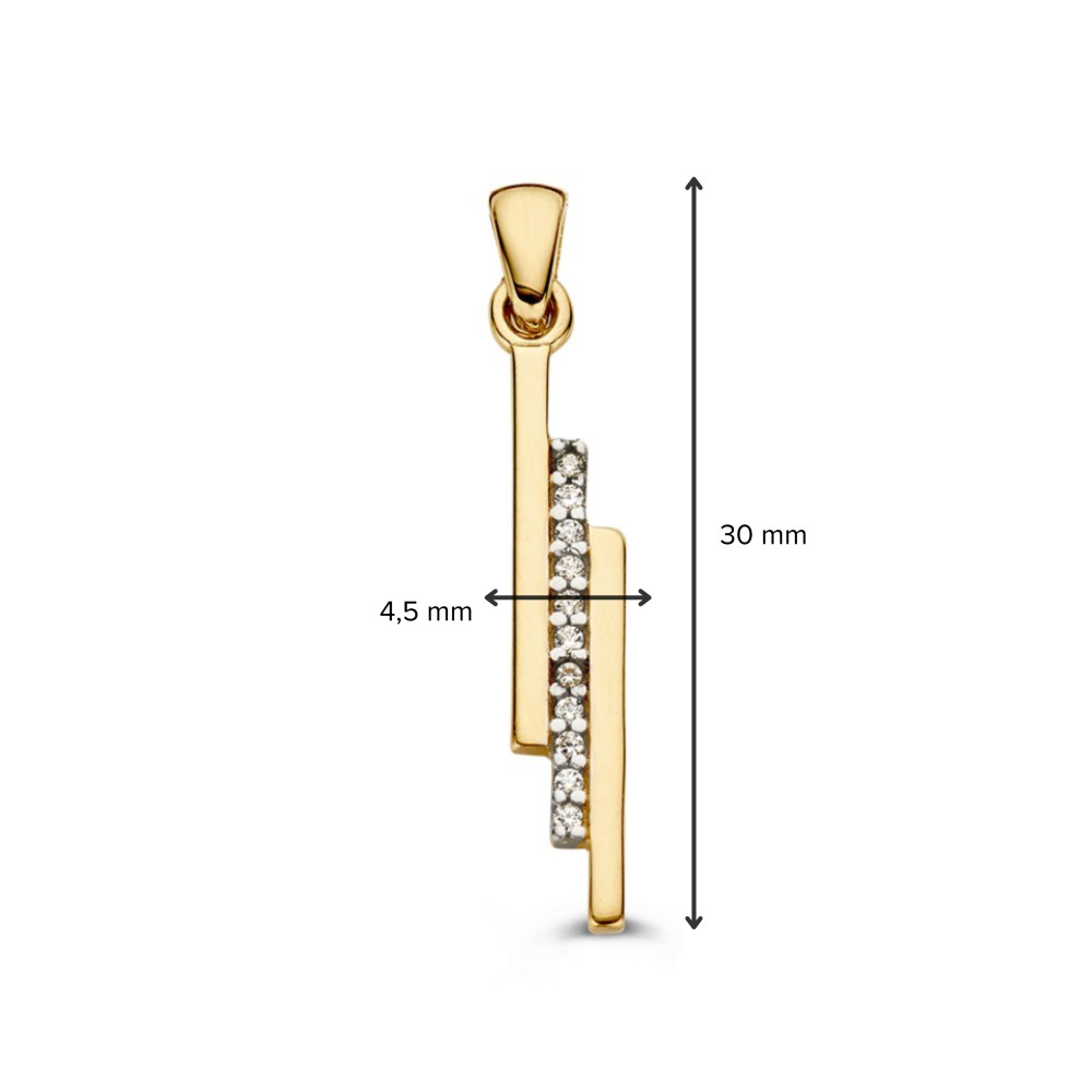 Geelgouden hanger in strak design gezet met zirkonia's.