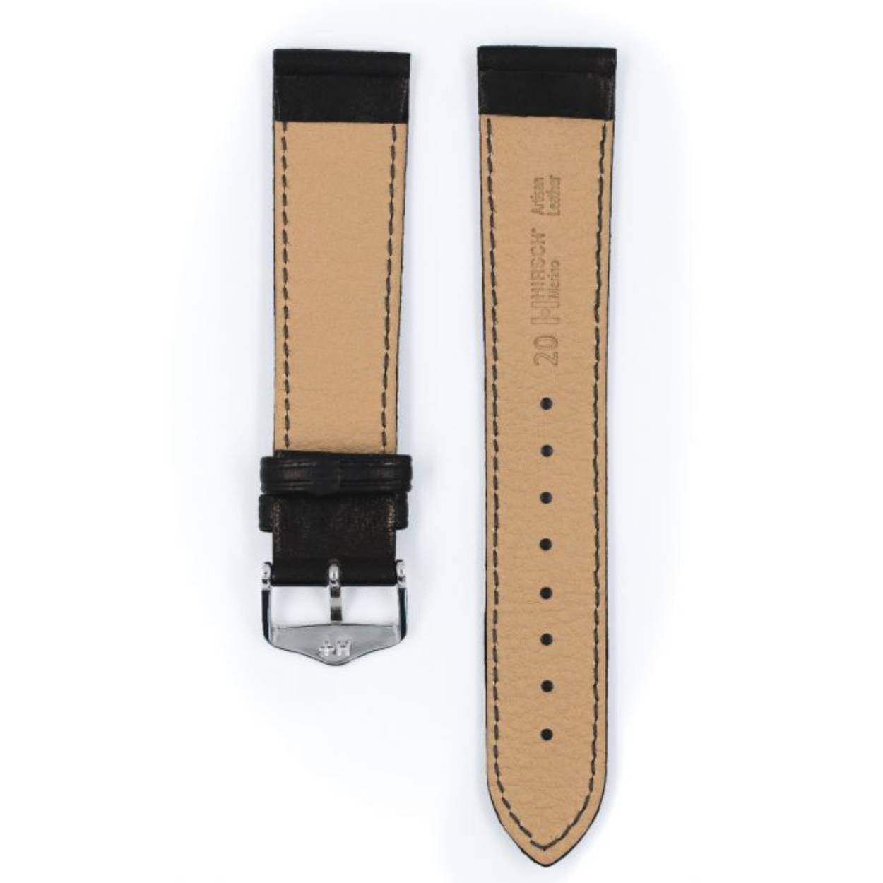 De discrete bekroning en het HIRSCH Oysterglove Supersoft voeringleer zorgen voor maximaal draagcomfort. Deze horlogeband heeft een fijn geaccentueerde gewatteerde naad die in de reliëflijn is ingebed. De reliëflijn op de lussen is al even elegant. Tenslotte is de mooi gevormde roestvrij stalen gesp in het HIRSCH Tradition ontwerp.