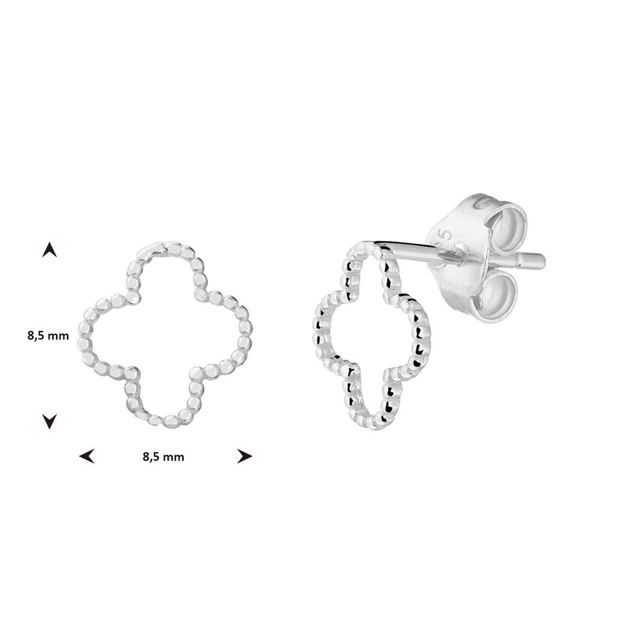 Gerhodineerd 925 zilveren oorknoppen uitgevoerd in de vorm van een bloem. De oorknoppen hebben een afmeting van 8.5x8.5mm.