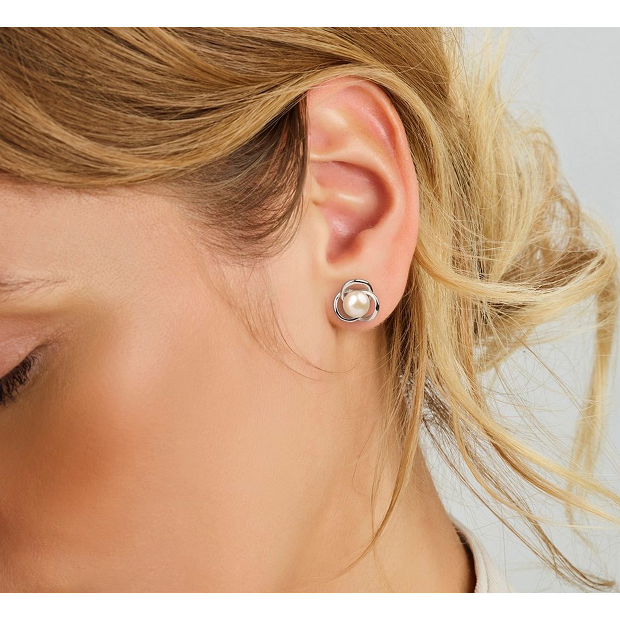 Gerhodineerd 925 zilveren oorknoppen uitgevoerd met een zoetwaterparel. De oorknoppen hebben een afmeting van 10x10mm.