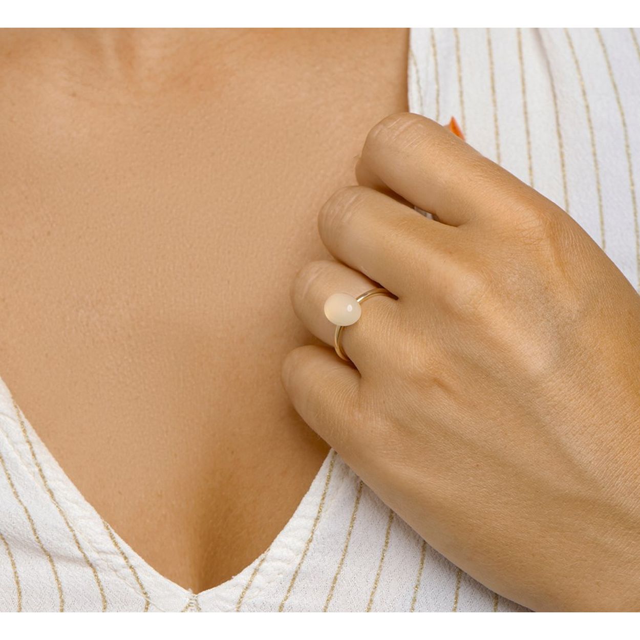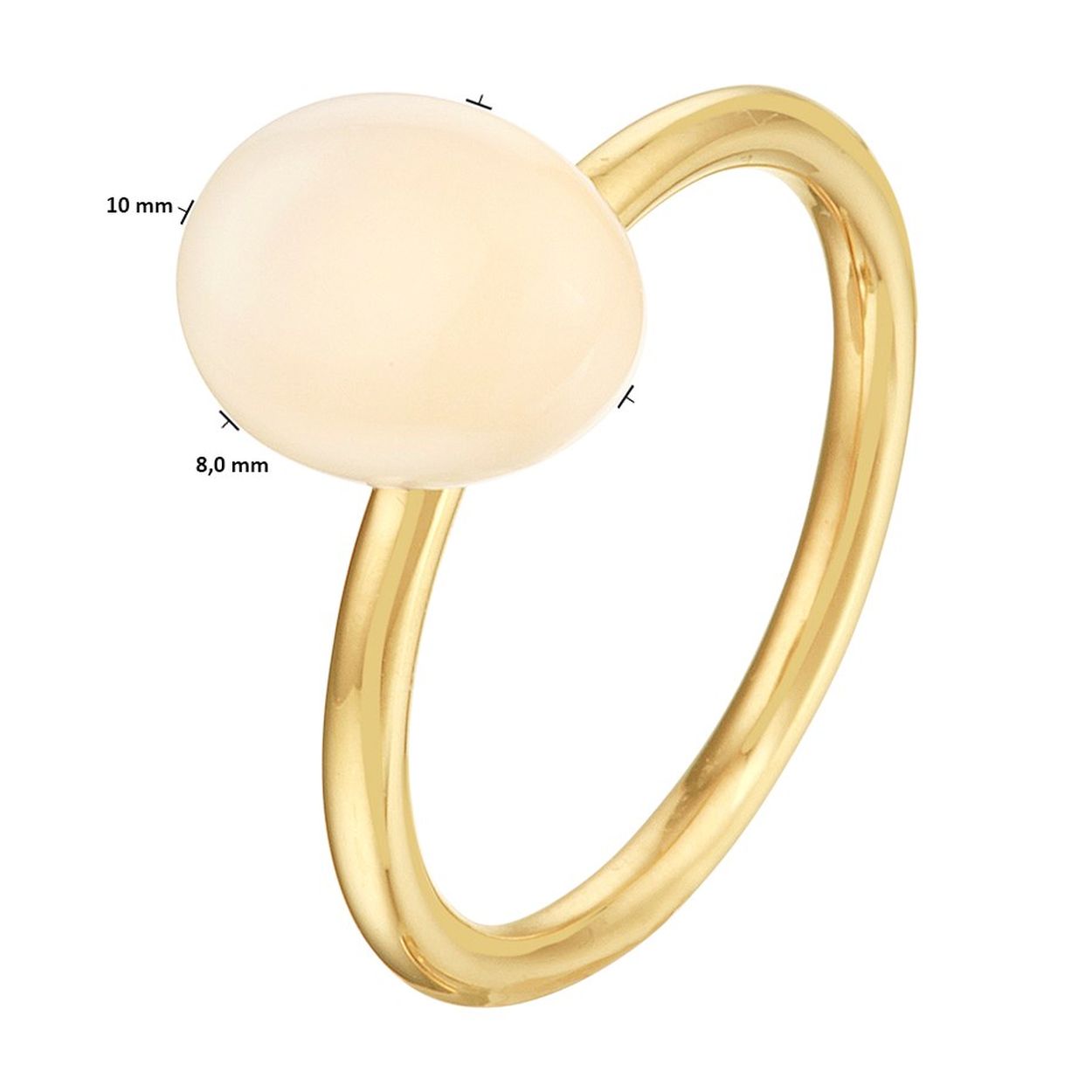 14k Geelgouden ring uitgevoerd met een schitterende wit chalcedoon. De ring heeft een breedte van 10mm.