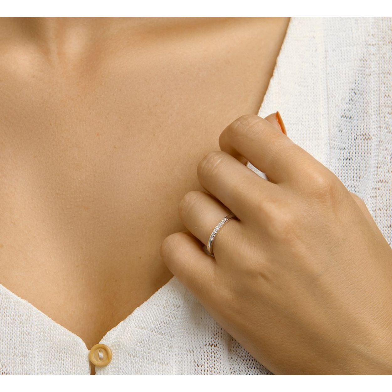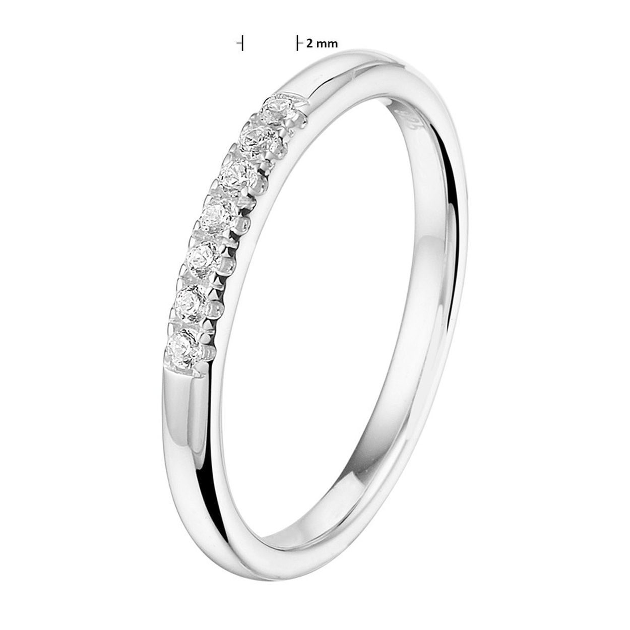 Gerhodineerd 925 zilveren ring uitgevoerd met een schitterende zirkonia rij. De ring heeft een breedte van 2mm.