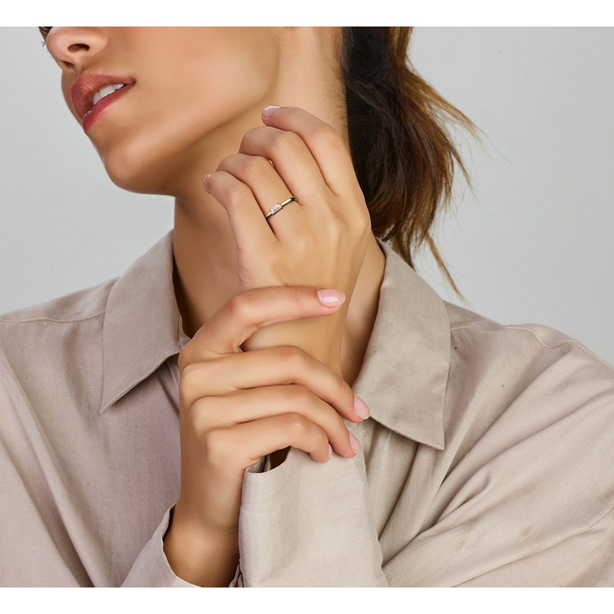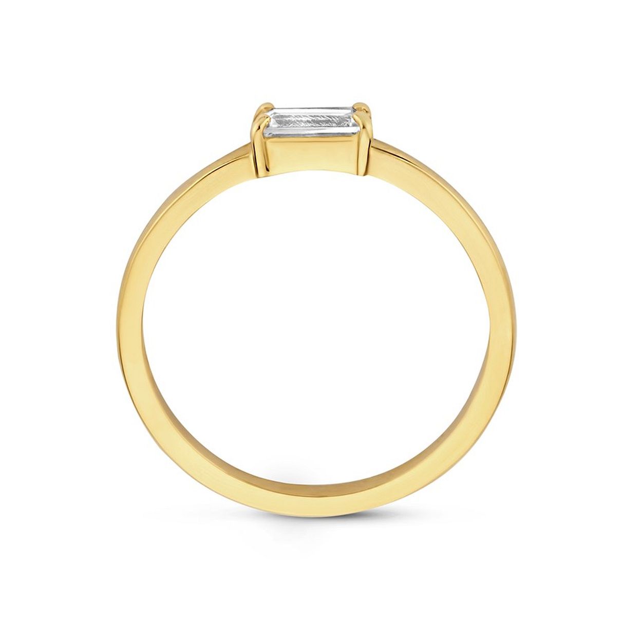 14k Geelgouden ring uitgevoerd met een schitterende zirkonia. De ring heeft een breedte van 3mm.