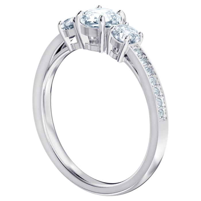 Deze prachtige ring symboliseert het verleden, heden en de toekomst van eeuwige liefde en is doordrenkt met tijdloze romantiek. Een trio van heldere kristallen staat centraal in dit rodium-vergulde ontwerp. Een prachtig elegant artikel dat voor altijd zal worden gekoesterd.