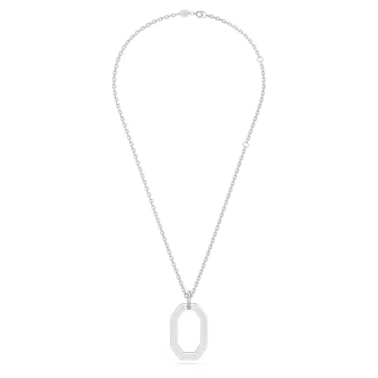 Voel u ultrachic met deze statement hanger. Dit sieraad met rodium toplaag bevat een achthoekig ontwerp met onze iconische pavétechniek op een opvallende metalen constructie. Combineer met kortere sieraden uit de Dextera-lijn voor een gelaagde look met een moderne twist.