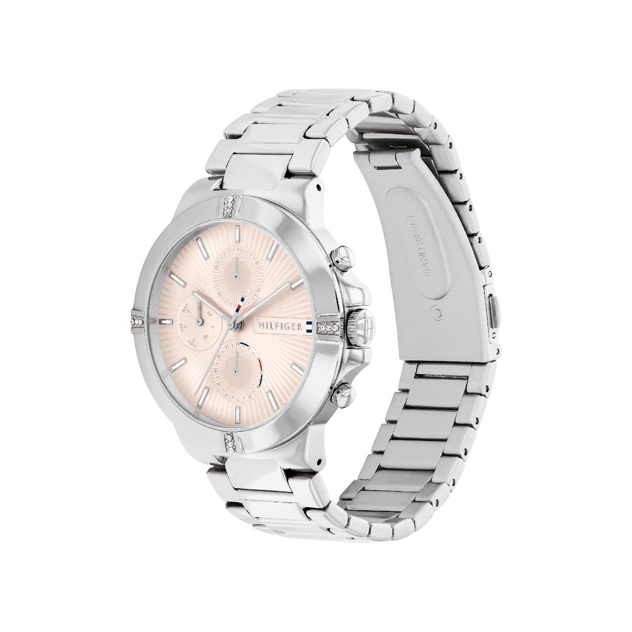 Dit zilverkleurige Tommy Hilfiger horloge TH1782329 is sportief met een attitude. De steentjes in de horlogekast geven een elegante draai aan deze sportieve stijl. De horlogeband is zilverkleurig en met zijn roze gekleurde, elegante multifunctionele wijzerplaat is dit horloge een absolute must en maakt iedere look compleet!