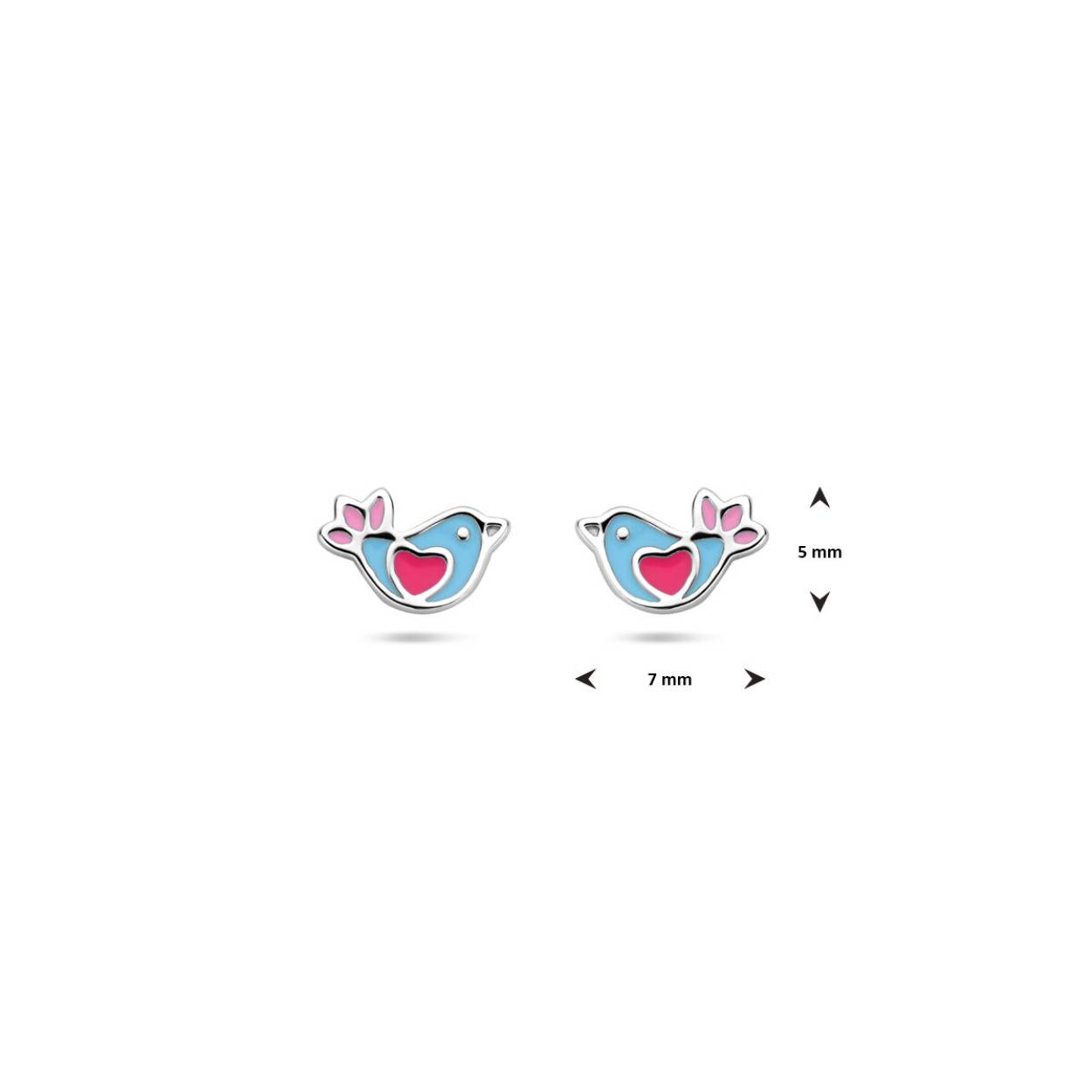Gerhodineerd 925 zilveren oorknoppen in de vorm van een vogel met emaille. De oorknoppen hebben een afmeting van 5.0x7.0mm.