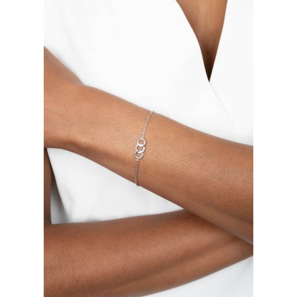 ZINZI set van 2 zilveren armbanden met in het midden drie mooie ronde schakels die met elkaar verbonden zijn. 'Altijd met elkaar verbonden' door deze 2 armbandjes. Geef dit armbandje aan je moeder, vriendin of zus en draag zelf de ander. Inclusief 'Altijd met elkaar verbonden' kaartje in de mooie Zinzi cadeauverpakking. De middelste schakel (8mm) is bezet met witte zirconia's en wordt sierlijk ingesloten door twee gladde schakels. De lengte is te variëren tussen 17 en 20 cm. Met herkenbaar Zinzi hartje bij de sluiting. Vervaardigd van eerste gehalte zilver (925) en voorzien van een extra rodiumlaag voor een langdurige glans.
